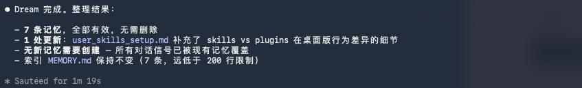 也就是说它只能写记忆文件,但碰不了你的源代码,整个做梦过程被严格隔离在记忆目录里面。