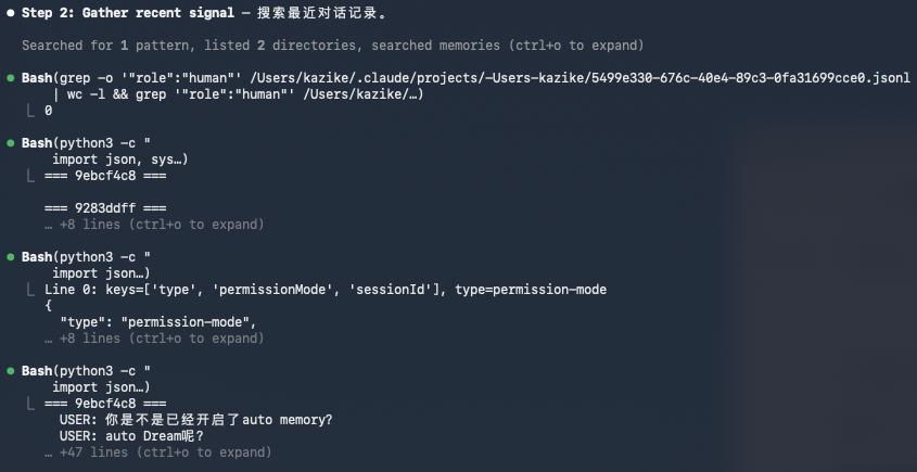 Claude平时不会去读这些日志,但Auto Dream做梦的时候会去翻它们,从里面捞有价值的信息出来。