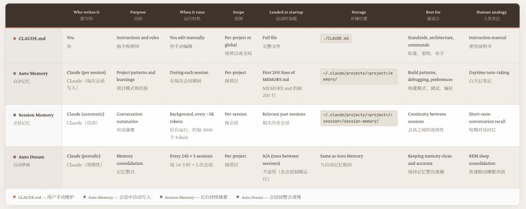 在正式聊Auto Dream之前,我觉得首先要说一下,跟其对应的另一个功能,就是Auto Memory。