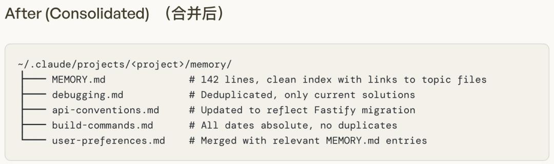而Auto Dream的作用,就是处理当前项目的这套memory记忆文件。