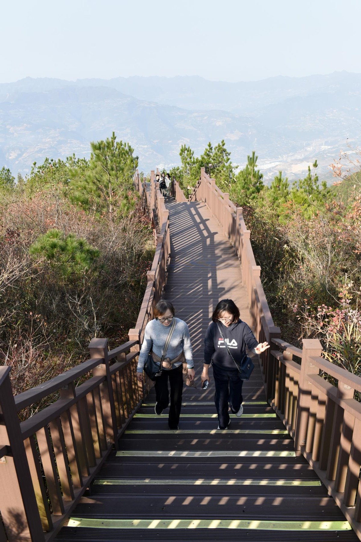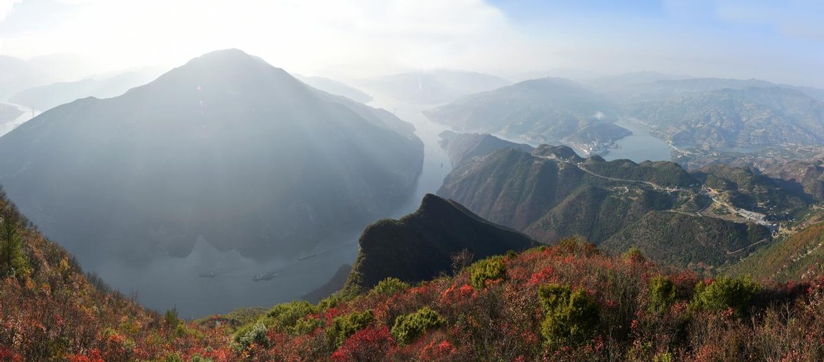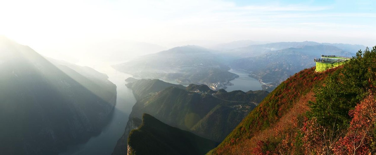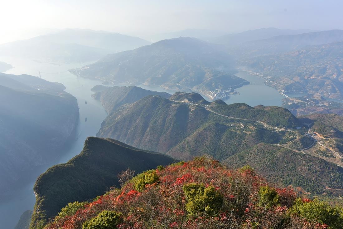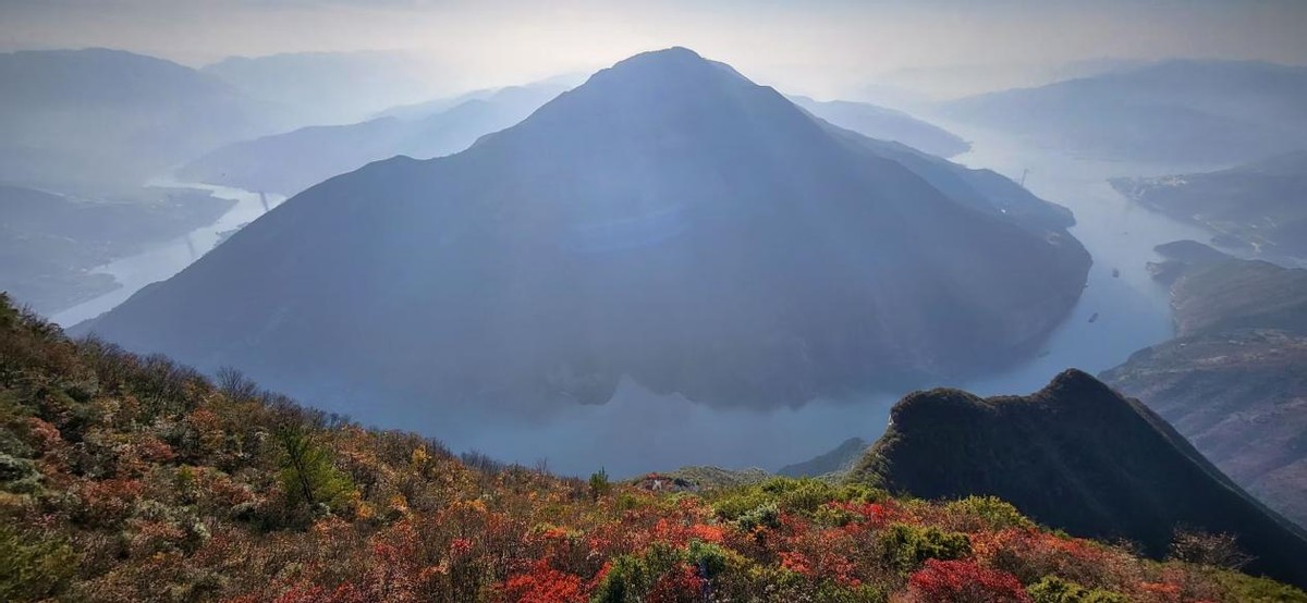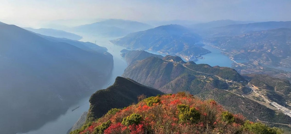 老婆难免面露怅色,我笑着宽慰:“登三峡之巅,从来不止于赏红叶。真正的精髓,在于瞰山、观水,在于将瞿塘峡的壮阔尽收眼底。”