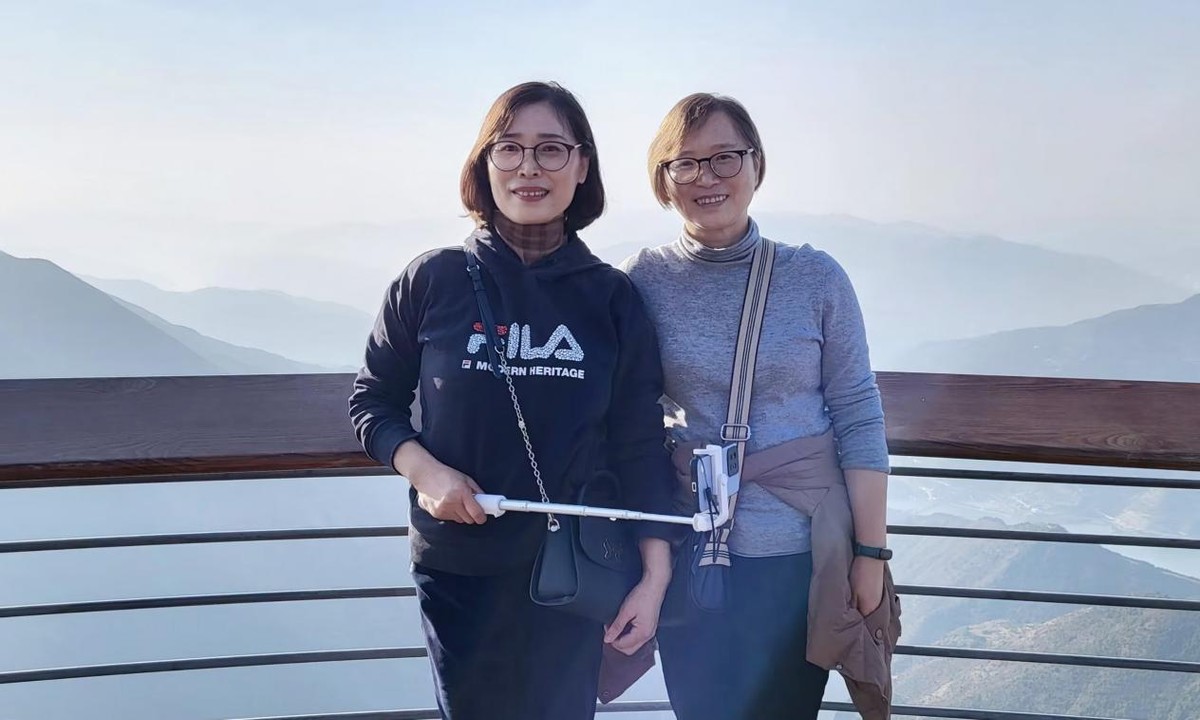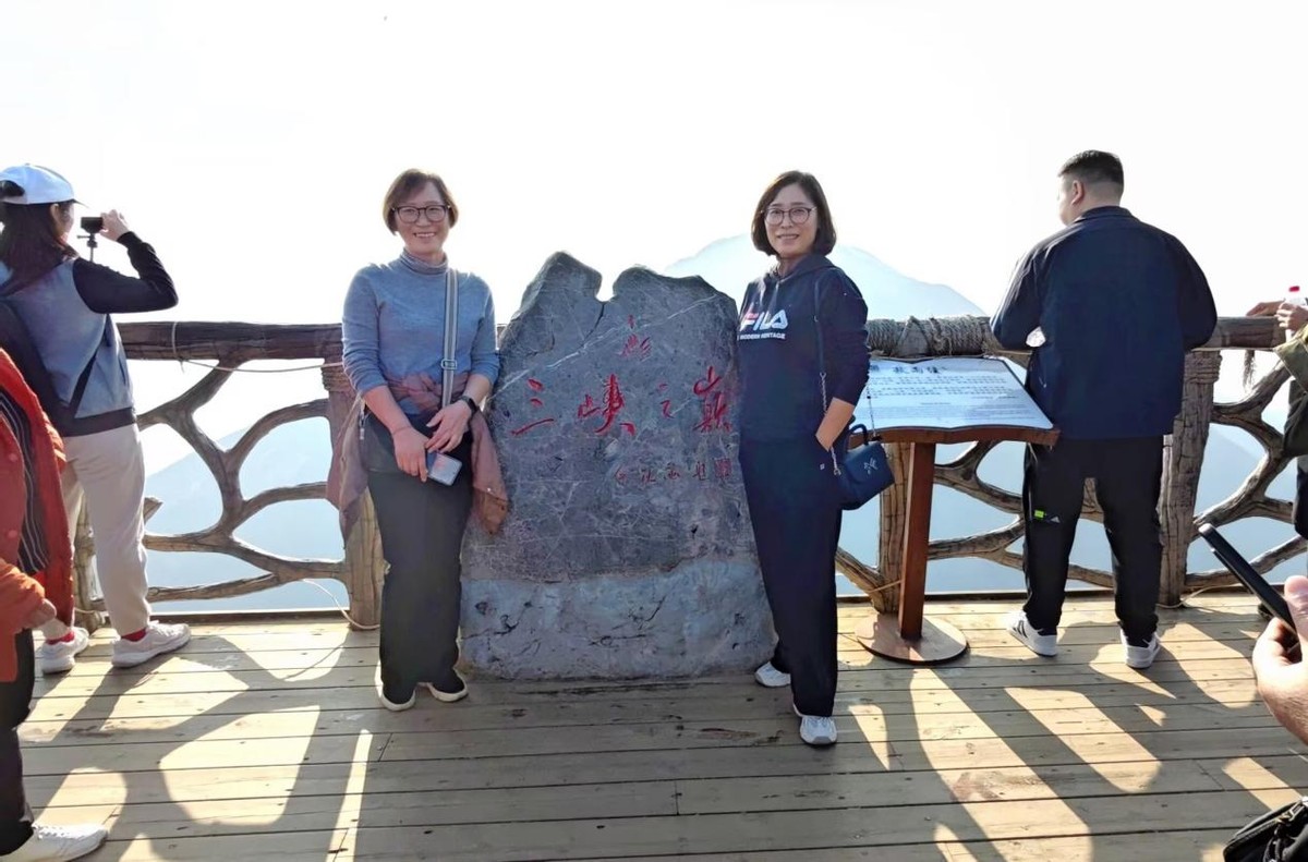 虽已过花甲之年,但站在这山水之间,每个人脸上都洋溢着不输年轻人的激情与热忱:有人举着相机寻找最佳角度,摆着各式pose打卡留念;有人对着壮阔江景放声高歌,用山歌抒发心中的畅快;还有人忙着整理视频,分享到朋友圈与亲友共赏。即便天空透明度欠佳,一层薄雾朦胧了远山的轮廓,却丝毫未减大家的兴致,阵阵发自内心的感叹与赞美声萦绕山间,足见此行不虚。