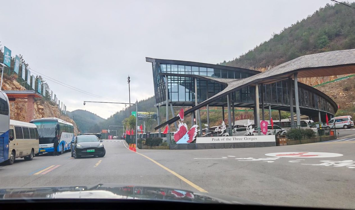 下午1点多,我们抵达三峡之巅的索道售票处,并未选择索道代步,而是继续驱车上行8公里,直至观光车售票处。景区消费格外亲民:门票20元/张,观光车往返票30元/张,购票后稍作等候,便搭乘观光车向山顶驶去。两侧林木葱茏,偶有红叶点缀其间,引得同车游人频频侧目。