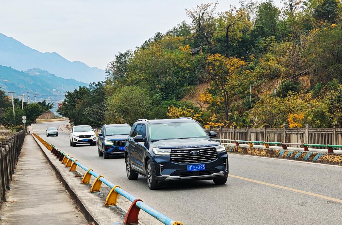 餐后取道夔门景区,沿着蜿蜒的朱衣河一路向上,山势渐高,秋意也愈发浓烈。