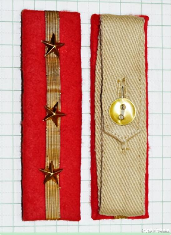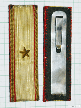 四五式肩章为法国竖式肩章,可拆卸式。底板为红色(军法为白色),军官为硬式用金属扣固定,士兵为软式用布纽扣固定。上面用金色纹路,金色五角星来表示军衔高低。