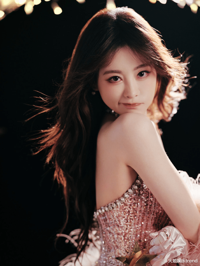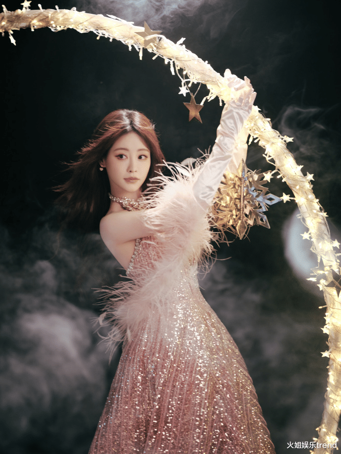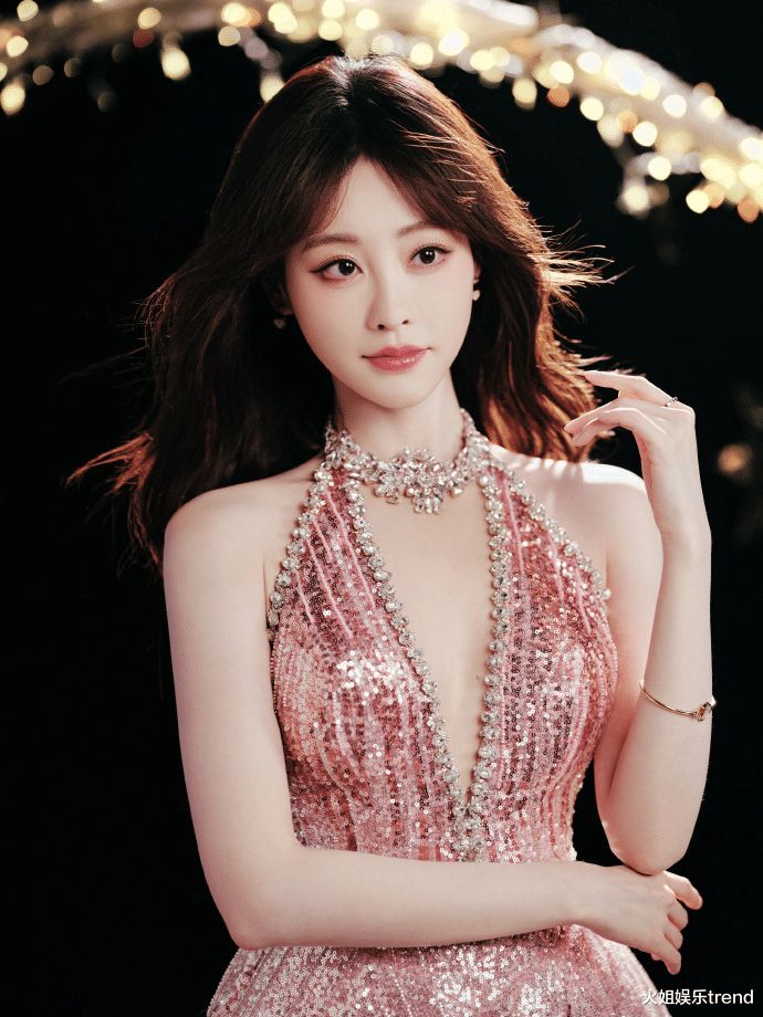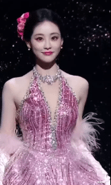 祝绪丹身袭渐变粉钻挂脖礼裙,重工亮片裙摆流转星河光泽,柔粉羽毛袖搭配缎面长手套,有着贵气并恰到好处的糅杂进青春俏皮,浑身透着一股从童话中走出的温婉公主,一登场便吸引无数眼球,成为焦点。