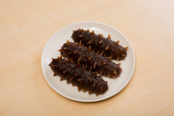 ②北海道海参:最显著的特点是标准的六排刺,参体饱满挺拔,弹性十足。