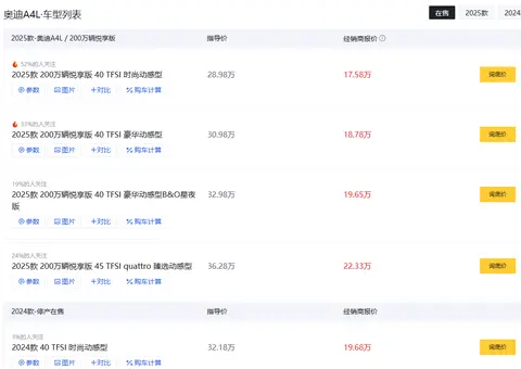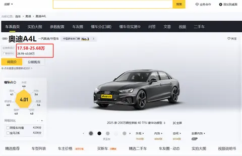 最近逛4s店的朋友应该都被惊到了,曾经在豪华中型车领域稳坐钓鱼台的奥迪A4L(图片|配置|询价),如今在成都市场最低起售