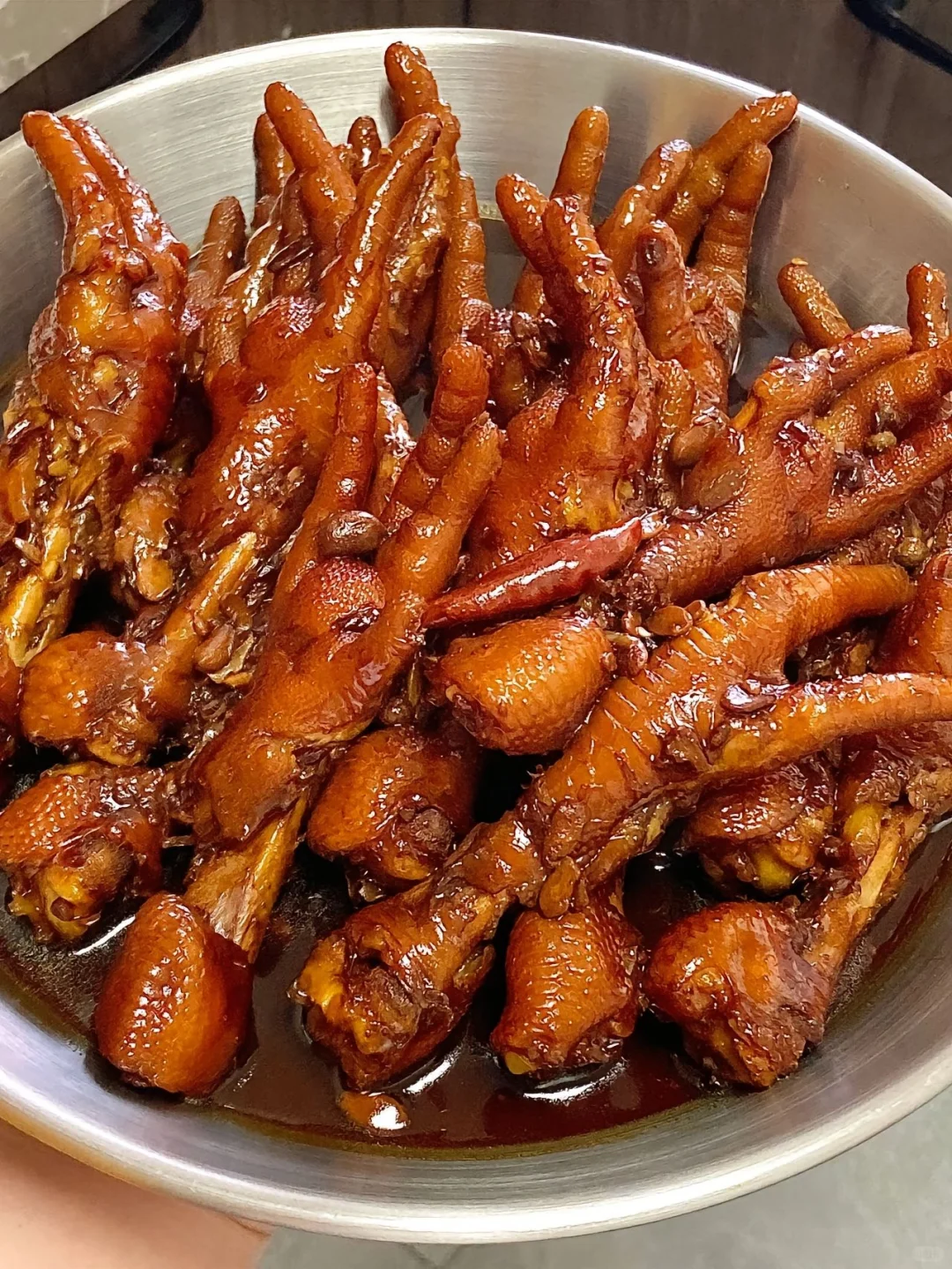 食材:鸡爪500克、干辣椒10克、花椒5克、八角2颗、桂皮1小块、香叶2片、姜片3片、蒜瓣5瓣、生抽3勺、老抽2勺、料酒2勺、冰糖10克、盐适量