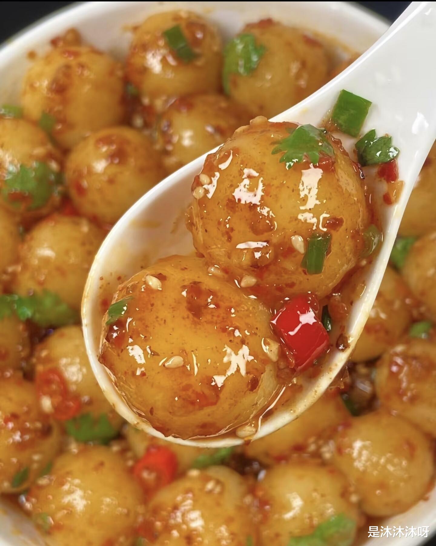 一盘热气腾腾的酸辣土豆丸子端上桌,香气扑鼻。夹起一个,外皮裹着亮晶晶的酸辣芡汁,咬一口,先是感受到外皮的软韧和酸辣的刺激,紧接着是内里土豆泥的温热和绵软,土豆的清香和酸辣汁的浓郁在嘴里完美融合。它既有炸物的满足感,又有汤菜的开胃感。在这个充满压力的时代,没有什么比吃上一盘热乎乎、酸溜溜、辣乎乎的土豆丸子更治愈的了。它用最普通的食材,给了我们最实在的快乐。