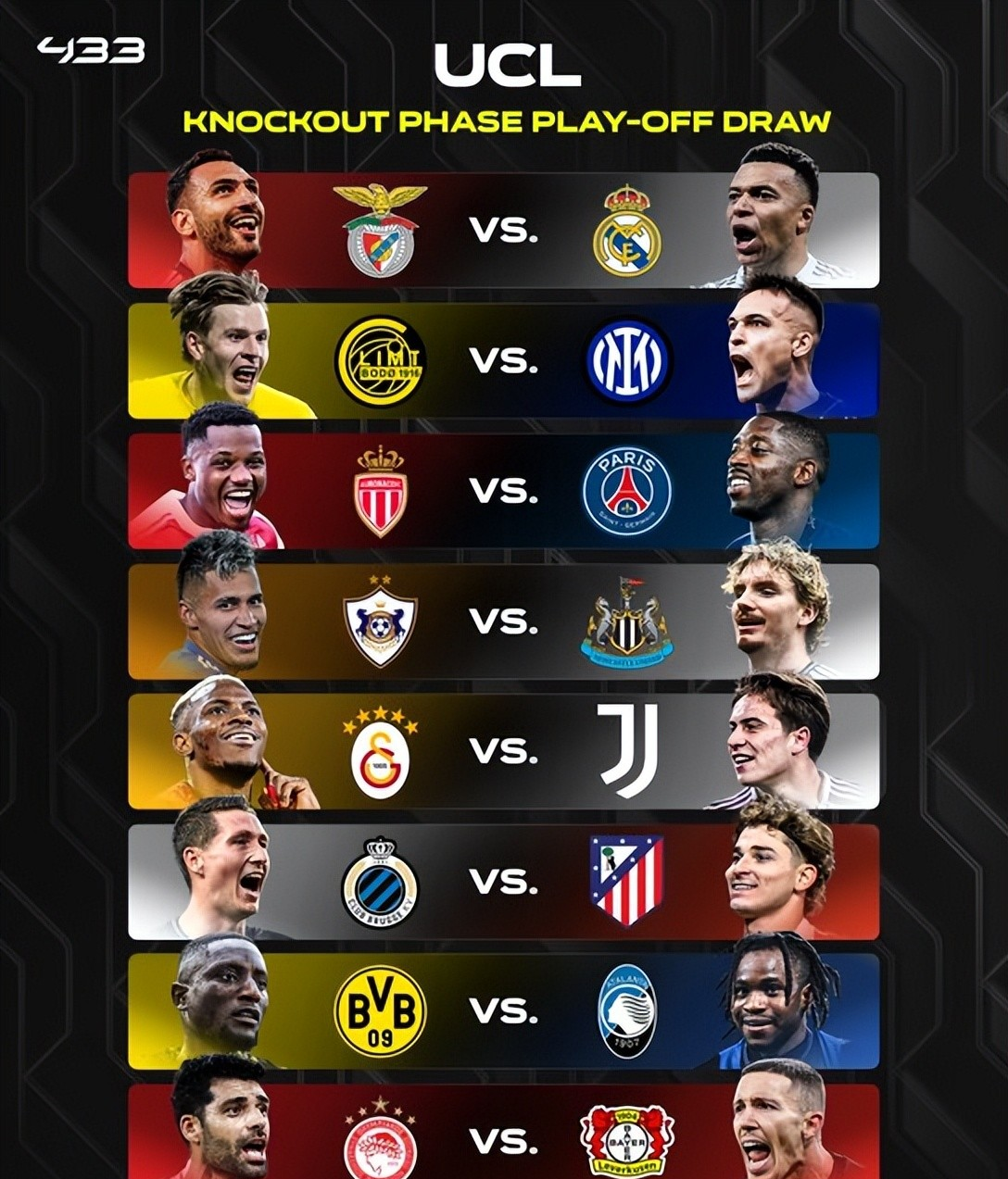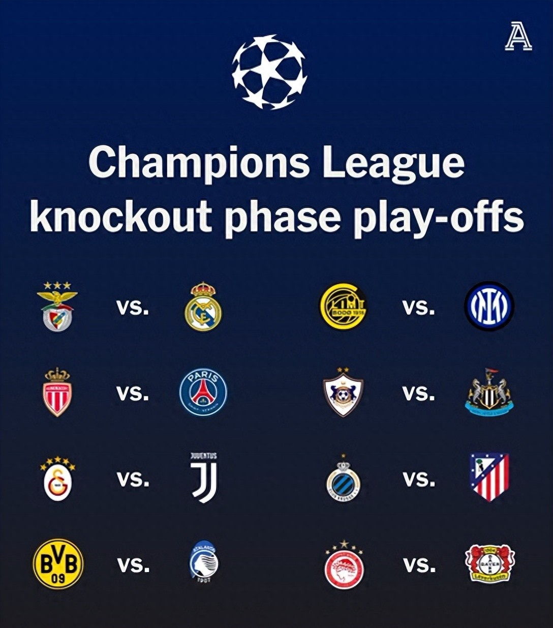 北京时间1月30日19:00,25/26赛季的欧冠联赛淘汰赛附加赛的抽签仪式在瑞士尼翁进行。而在抽签嘉宾、阿森纳名宿皮雷的参与下,本赛季进入欧冠淘汰赛附加赛的16支球队最终确定了各自的对阵。