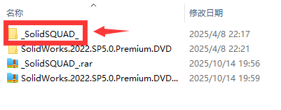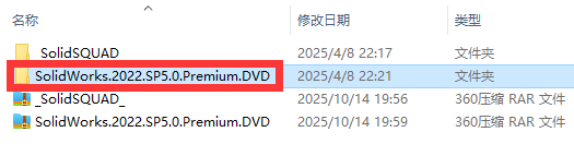 11、回到最开始解压出的文件夹,找到【SolidWorks.2022.SP5.0.Premium.DVD】文件夹,双击打开。
