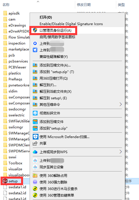 12、找到【setup】程序文件,鼠标右键,选择【以管理员身份运行】。