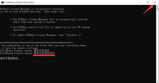 10、显示【服务已经启动成功】后,点击右上角【X】退出。