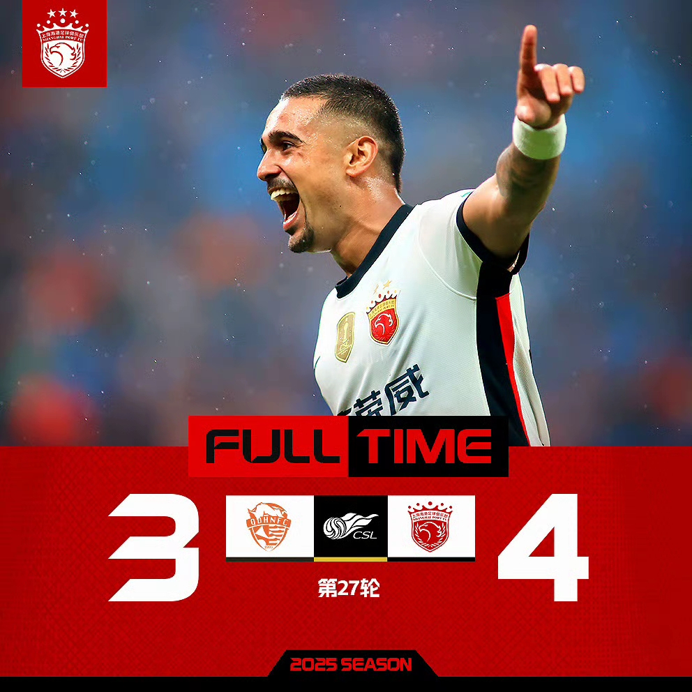 中超联赛第27轮,先赛三场,上海海港客场4比3险胜青岛海牛,成都蓉城主场3比1击败梅州客家,上海申花客场2比1逆转9人青岛西海岸!