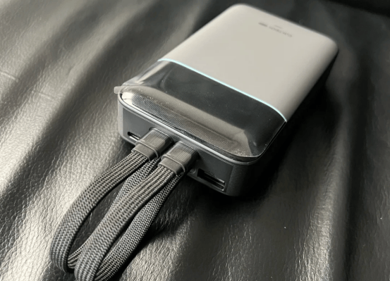 酷态科CP24电能块容量为20000mAh,额定容量12000mAh,厚度偏厚但设计稳重。机身正面带数码管显示,可以实时查看剩余电量和充电功率。支持最高40W双向快充,半小时能为iPhone充至50%以上电量,日常使用充电效率较高。自带Lighting和Type-C线,长度约13厘米,线材采用紧密编织工艺,不易折损,收纳后还能作为提手使用,方便携带较重的机身(360g)。机身还预留USB-A和USB-C接口,可同时为多台设备充电。安全方面,每分钟可检测12000次温度,长时间使用温控表现平稳,不会出现过热告警。整体使用体验偏向高效且安全,但机身较重,单手使用时间稍长会感觉累。