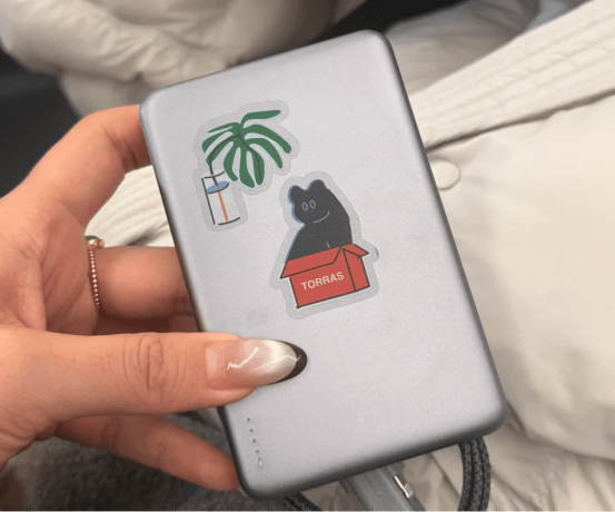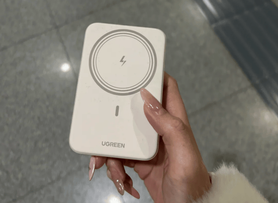 图拉斯PB2B的机身轻薄,配合磁吸支架设计,吸附在手机上比较稳固,携带时不显笨重。容量为5000mAh,满足日常应急续航,但无线充功率仅7.5W,线充18W,补电速度有限,如果手机电量较低,需要较长时间充满。它的核心优势在于温控,搭载“iPhone同源散热芯片”,能在充电过程中保持机身温度相对稳定,减少过热对手机电池的影响。实际体验中,长时间无线充电机身会微热,但不会过烫,手感尚可。整体而言,适合在外短时补电或希望充电安全的场景,例如在办公室或咖啡厅使用无线充电,同时不追求快充效率。