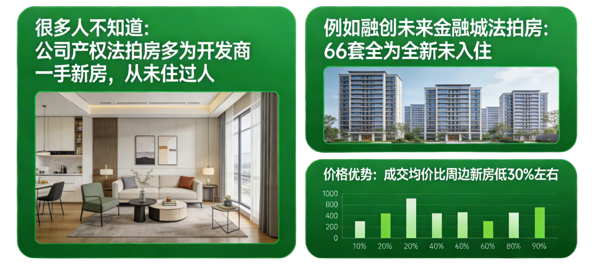 比如融创未来金融城那批法拍房,66套全是全新未入住的房子,比买二手房省心多了。