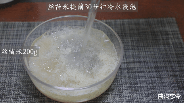 1、细苗米清洗干净,用适量清水泡30分钟。浸泡到米粒能用手指掐断的状态。