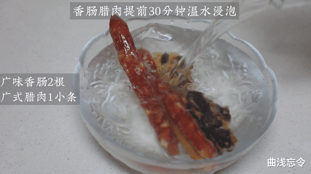 2.腊味推荐用广味腊肠和腊肉,不太建议用烟熏腊肉或麻辣味的腊肠。推荐偏甜口味的腊味。广味腊肠和腊味推荐提前蒸10分钟左右,如果质地偏软切薄片也可以不蒸。