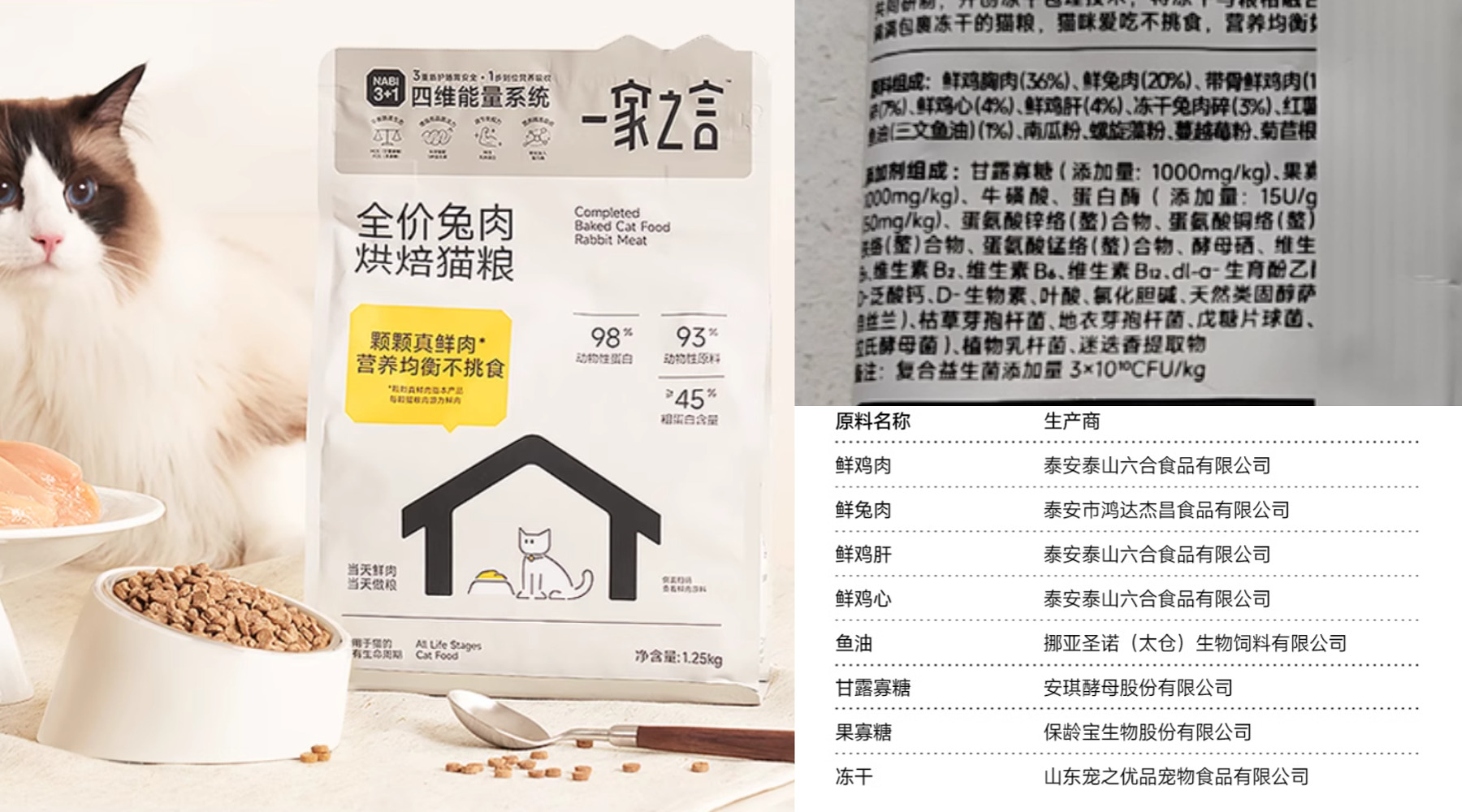 一家之言这个牌子,走的是中高端路线,核心卖点就是鲜肉配方和无谷。他们很强调用新鲜肉类,注重食材的天然和营养保留。不过品牌背后的信息公开得不多。一家之言猫粮生产是泰安泰宠宠物食品在做,工厂有基础的规范和原料审核流程。营养数据很,蛋白质≥45%,脂肪≥20%,能给猫提供充足的能量和动物蛋白。另外,牛磺酸、B族维生素、维生素D这些营养素也都添加了,比较全面。