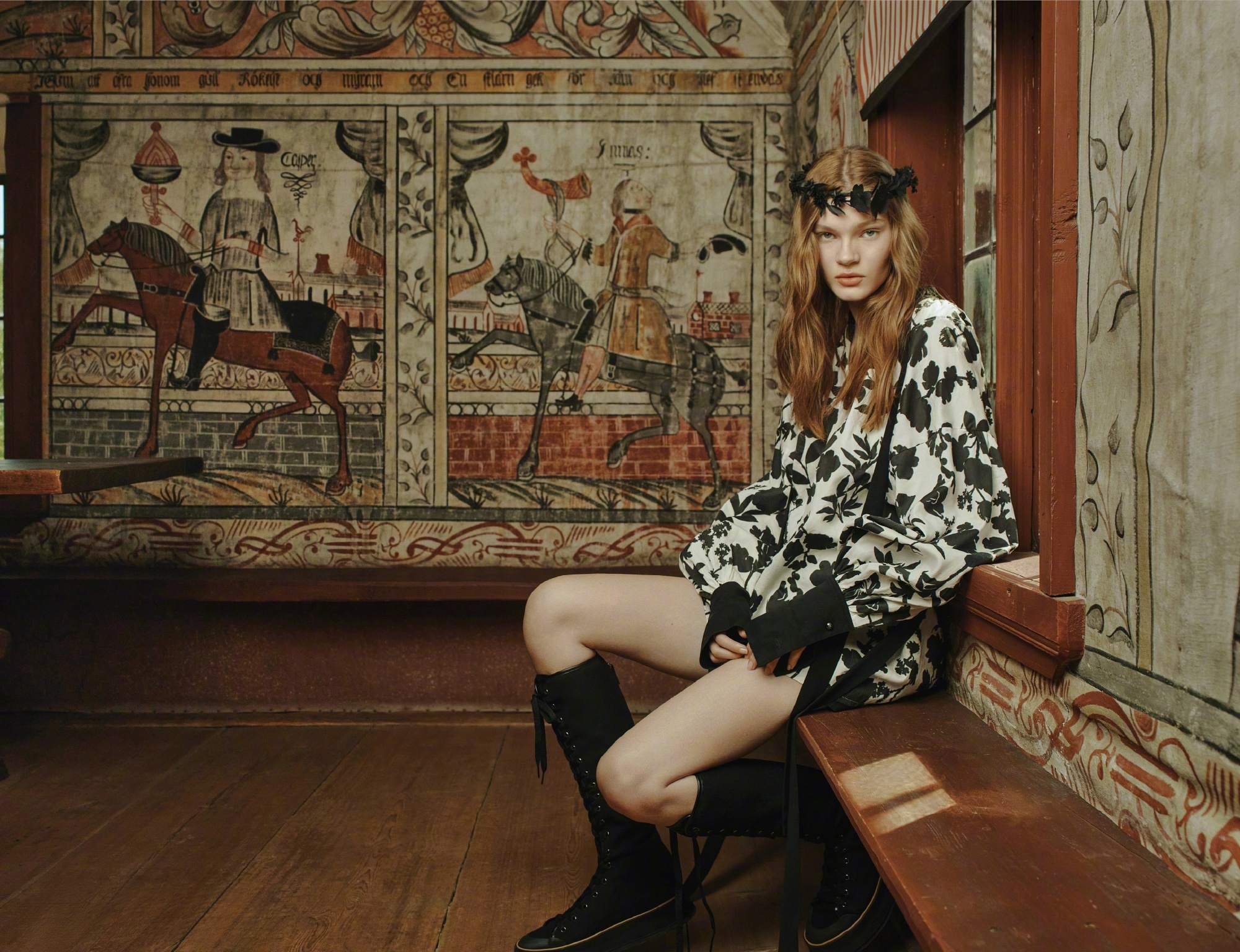 在这个充满浪漫气息的季节里,Max Mara的服装与斯堪森露天博物馆的古老房间相得益彰。它们共同演绎着一段美好的故事,将时尚与美和古瑞典的历史文化完美的融合,让更多的人领略到时尚的文化底蕴。