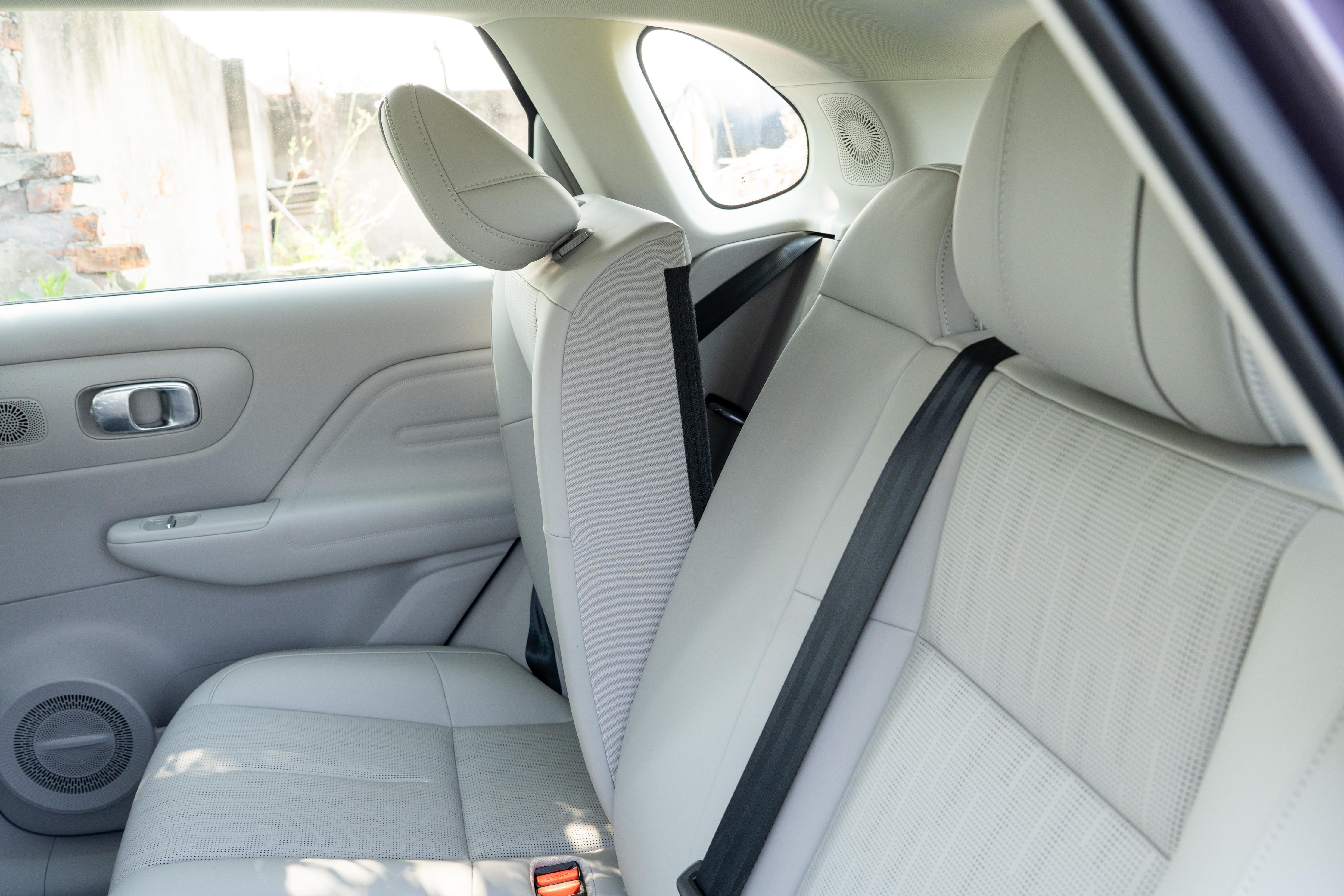 试驾时带家人体验,后排空间是全家都夸的点。轴距2735mm,得房率高达87.4%,我身高178cm,前排调好后,后排腿部还有两拳多余量,跷二郎腿完全没问题。