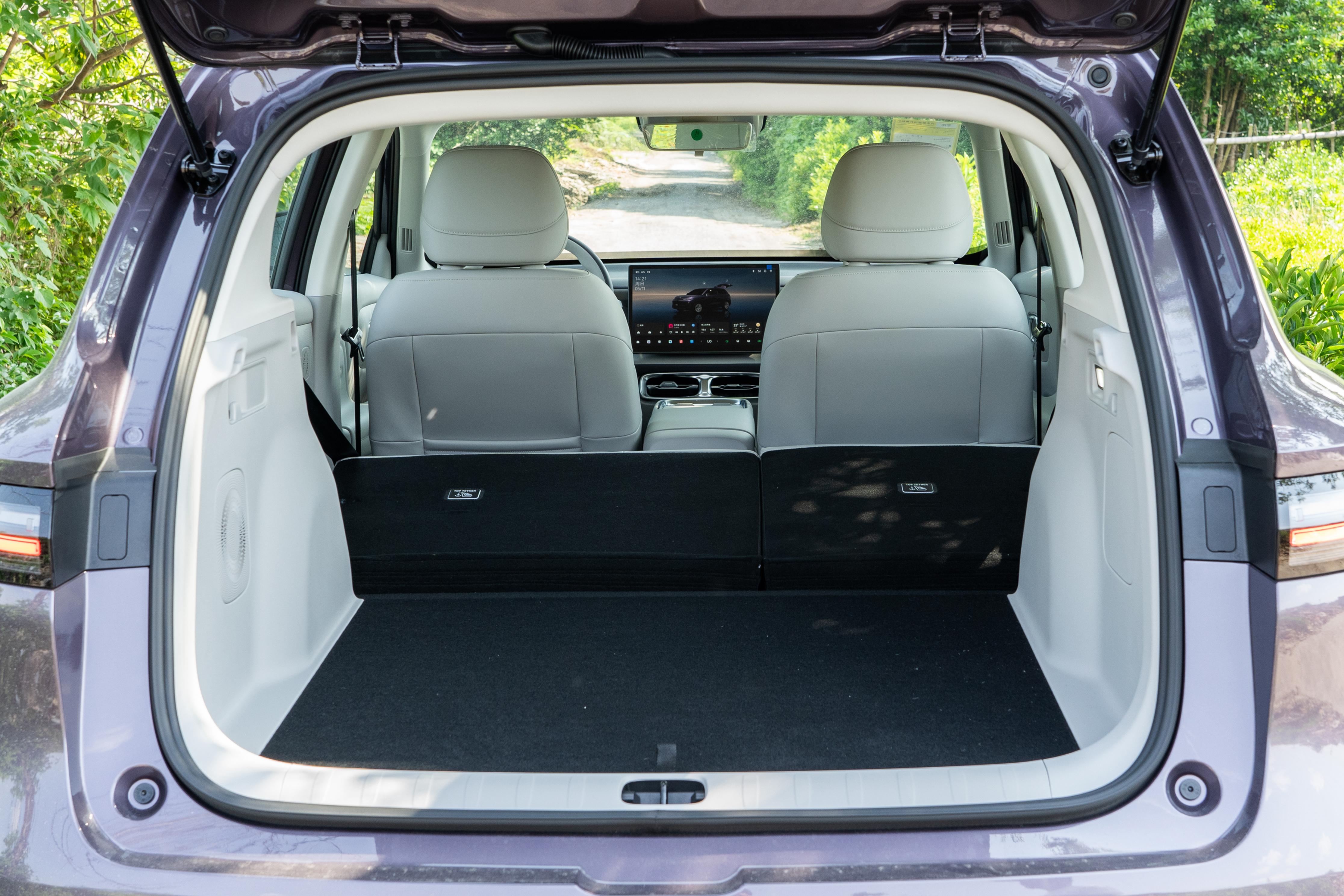 后备箱的表现也超出预期,常规420L容积,放两个24寸行李箱、露营装备,还有孩子的滑板车,完全没问题,周末带全家出门,行李都能装下。后排座椅支持40:60比例放倒,放倒后容积能扩展到1415L,上次搬家,大柜子、小凳子全都塞进去了,连1.8米的床垫都能轻松放下 。而且后备箱下层还有约95L的拓展空间,能放些鞋盒、工具箱,收纳更规整 。