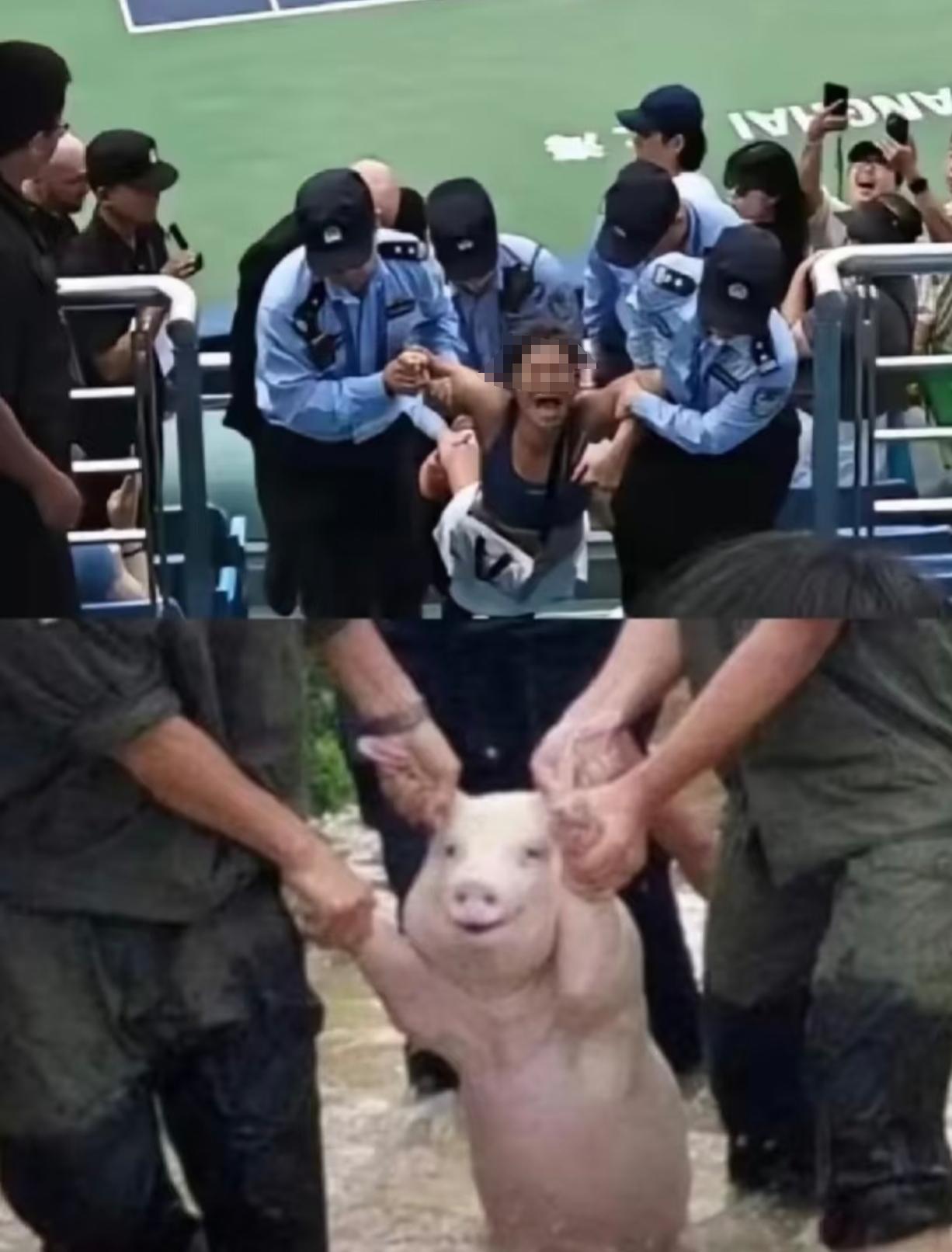 被抬走时,她还在挣扎尖叫,身体扭动的模样狼狈不堪,与之前的嚣张形成刺眼对比,全场观众在这一刻自发响起掌声,这掌声不是为比赛喝彩,而是为维护秩序的执法者点赞,更是对这场闹剧的无声谴责。