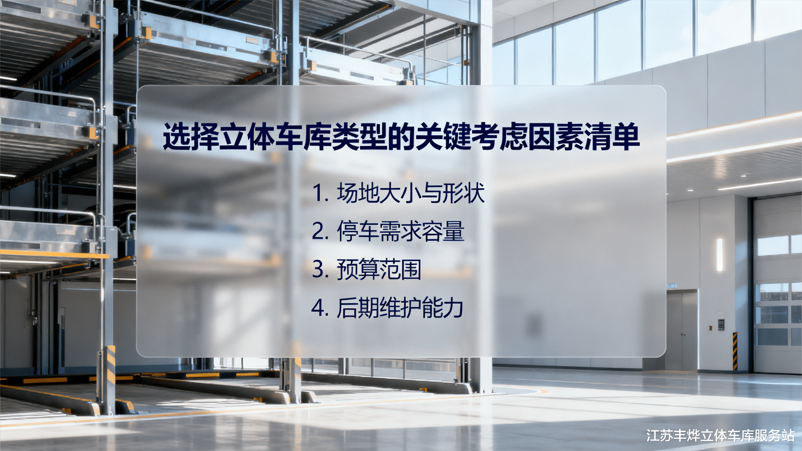随着城市停车需求激增,立体车库成为缓解停车难的重要选择。但立体车库类型多样,选型需综合多维度考量,才能确保适配场景需求、发挥最大价值。专注机械式立体车库领域28年的江苏丰烨驻车系统有限公司,凭借全链条服务经验,可为选型提供专业参考,助力客户选到合适的立体车库。