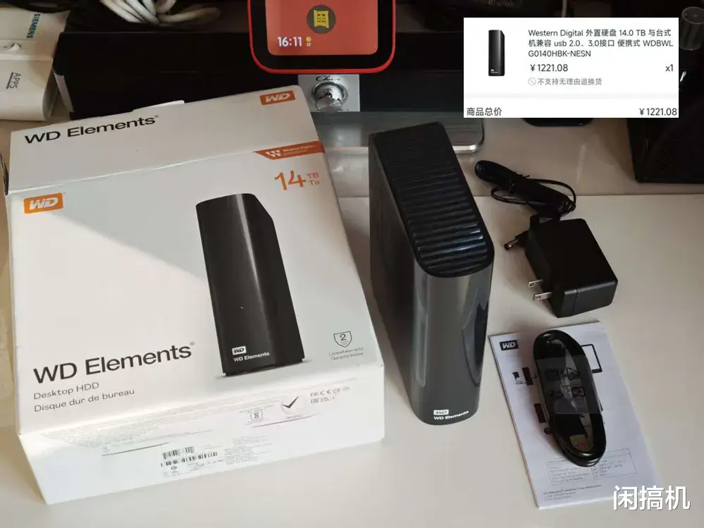 年末鸟枪换炮,把自用4T硬盘换成了14T。11月在美国亚马逊的“黑五”大促入手西数14T桌面硬盘,全新1221元,算上进口费合计1330元,12月末才收到,里面是一块7200转的垂直氦气硬盘,拆给NAS用。