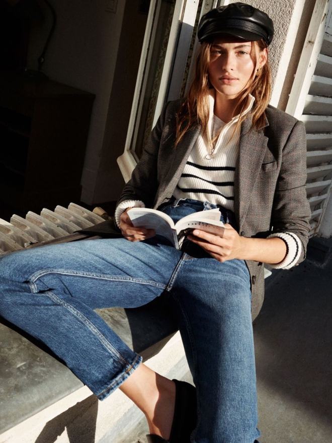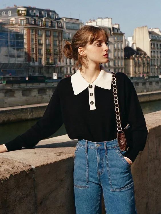如果想把它单穿,最直接的搭配就是一条牛仔裤,塞下衣角,在视觉上调整身材比列,更加显高。