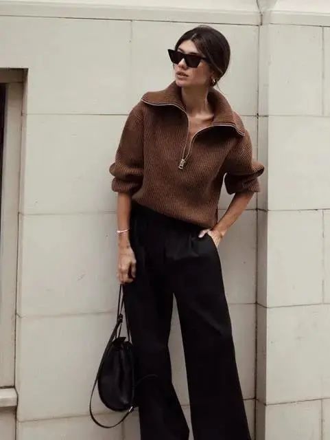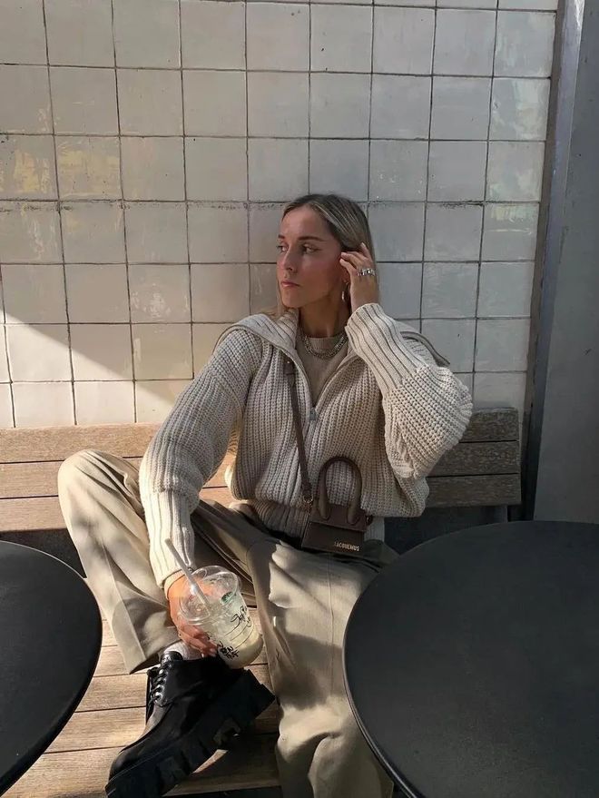 除了带纽扣的翻领毛衣,今年的拉链款毛衣也深受时髦精们喜爱。