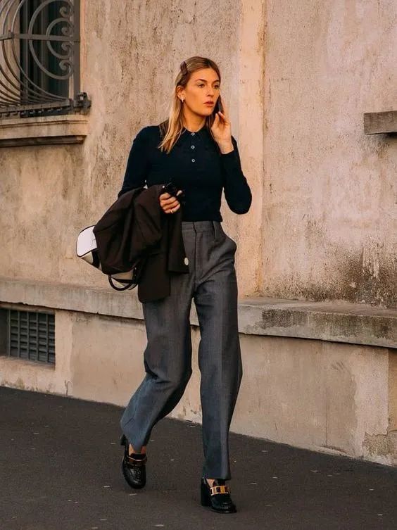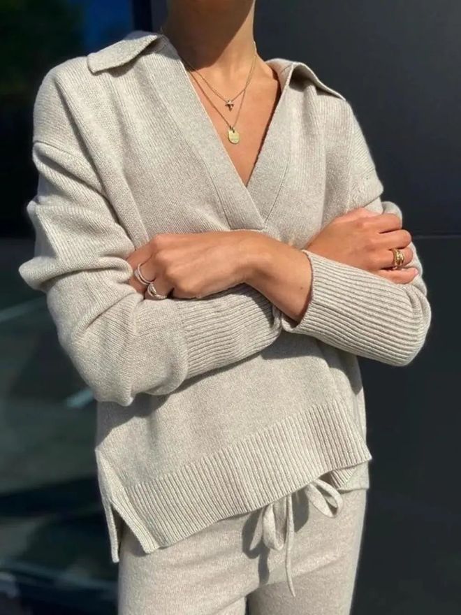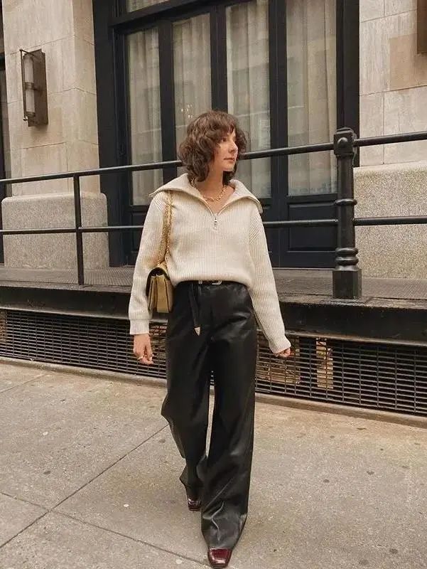像这样修身的翻领毛衣,直接搭配西装裤,因为有了经典复古的翻领设计加持,让整个人的气场瞬间提升了一个level!