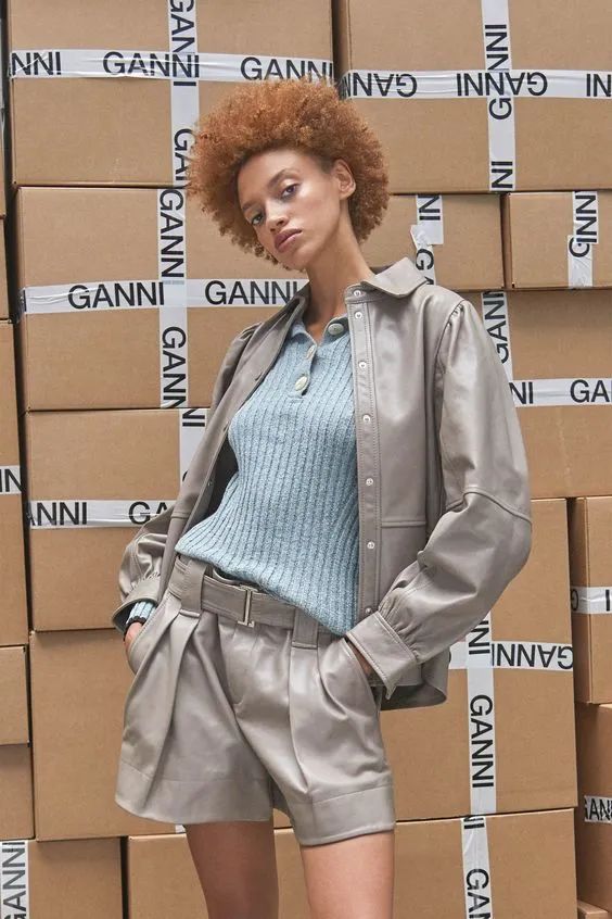 把它当作内搭,衣领外翻,叠穿西装增加层次感,就是酷飒本人了,特别适合凹造型拍拍拍!