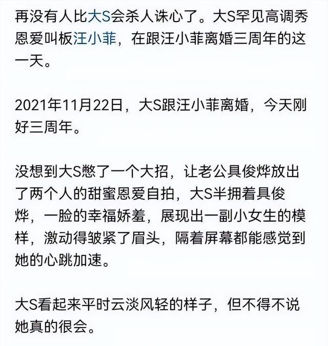 女星大S活成乞丐,二婚生活亮红灯!具俊烨和汪小菲对比太明显!豪门梦碎,她还能怎么办?