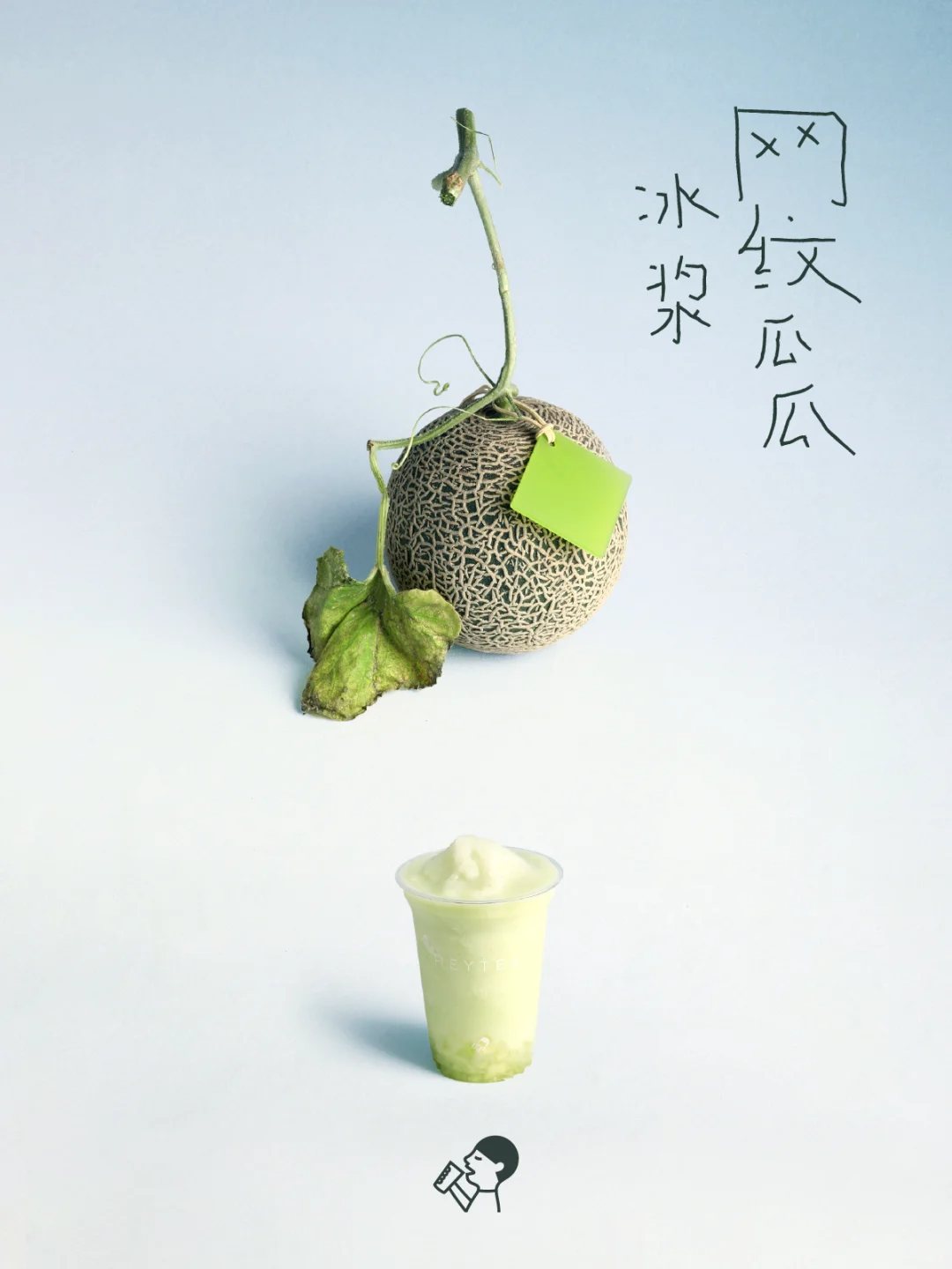 把日晒网纹瓜、新鲜小青瓜和糯米冰浆打在一起,不过分甜,不刻意浓,没有多余添加,只有瓜熟米香的本来味道。