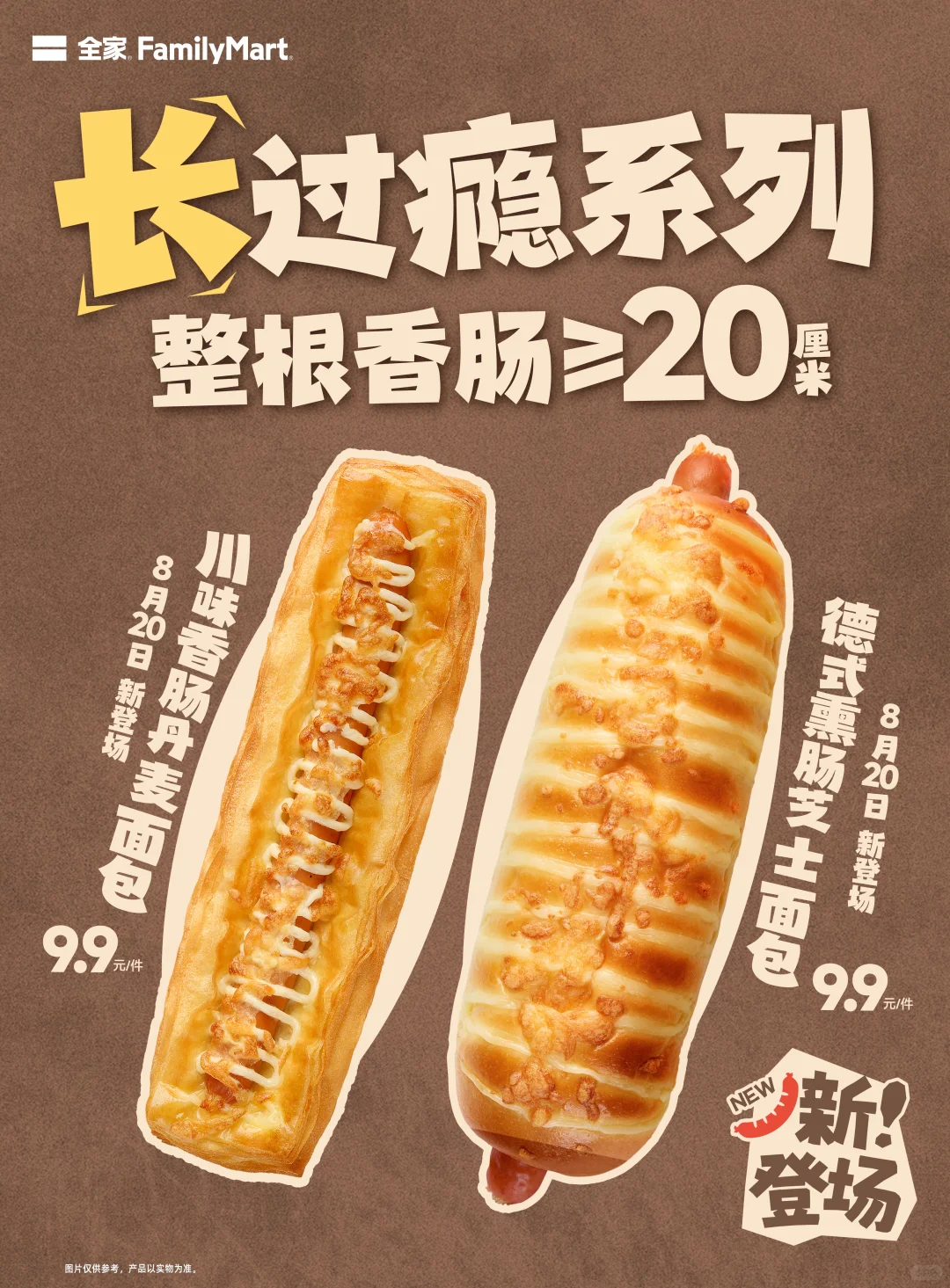 「川味香肠丹麦面包」,千层酥皮丹麦面包,嵌入整根川味香肠,体验川味与北欧面包碰撞的新奇口感。「德式熏肠芝士面包」,烟熏风味熏肠+马苏里拉浓郁芝士,咸香多汁、奶香浓郁,一口超过瘾。