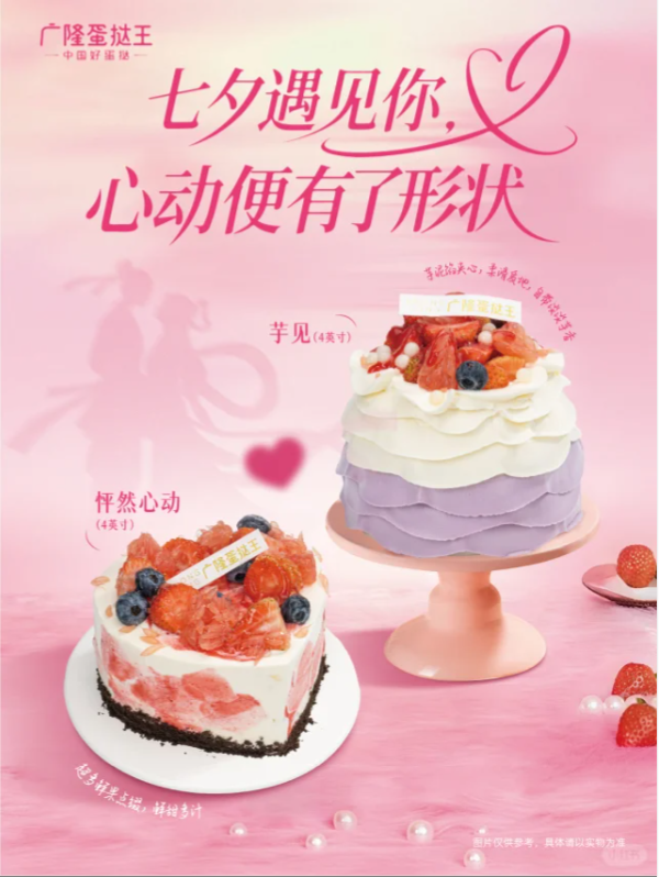 七夕蛋糕限定上新,为这个节日注入双倍甜蜜与心动。「怦然心动」带来莓果三重奏酸甜撩胃,一口坠入初恋般悸动。「芋见」让香糯芋泥邂逅清爽鲜果,裙摆摇曳漫舞舌尖,把温柔吃进心里去。