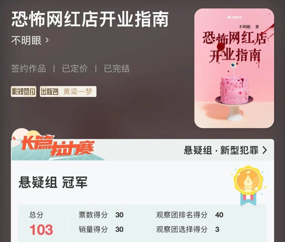 △ 小说《恐怖网红店开业指南》是豆瓣重点推荐的作品