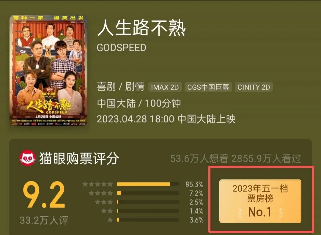 △ 《人生路不熟》曾斩获2023年“五一档”票房冠军