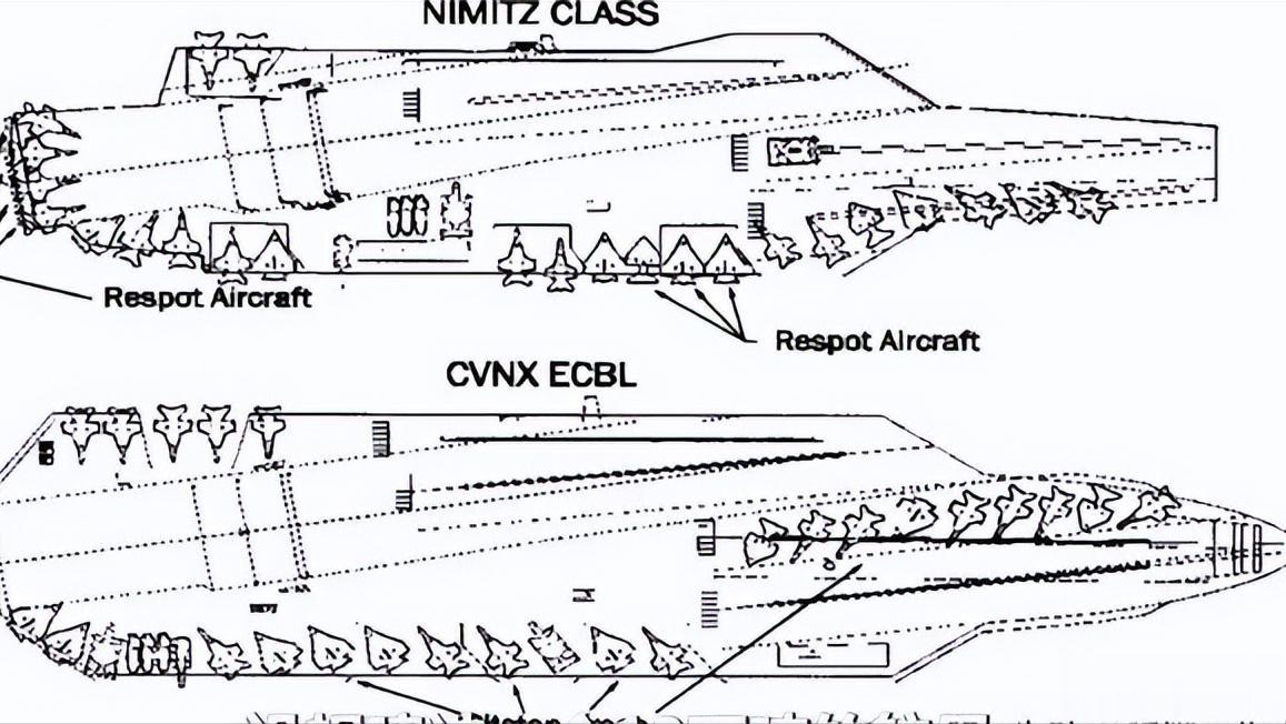 美国海军在上世纪90年代末的下一代航母研究里,曾经提出过ECBL方案。那时候的想法是扩大平台容量,来优化舰载机调度和舰员工作环境。