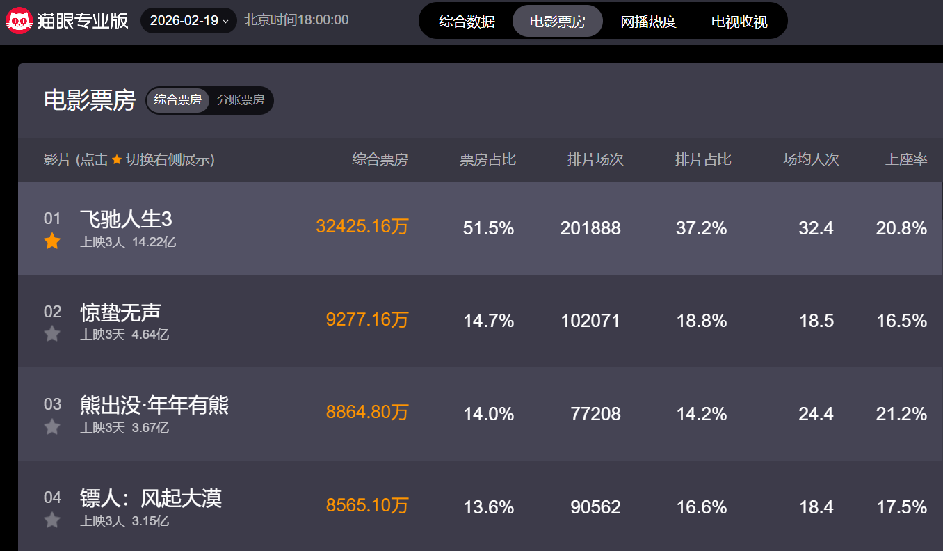 这个春节档,韩寒执导的《飞驰人生3》成现象级爆款,截至(正月初三)2月19日18时00分,实时票房冲破32亿平均每天10多亿稳居榜首,猫眼预测有望冲击50亿。票房狂飙背后,一汽奥迪、理想、坦克500三大汽车品牌借势破圈,避开生硬硬广,凭与剧情的深度绑定成为隐藏赢家,更给汽车行业电影营销写下可复制范本。
