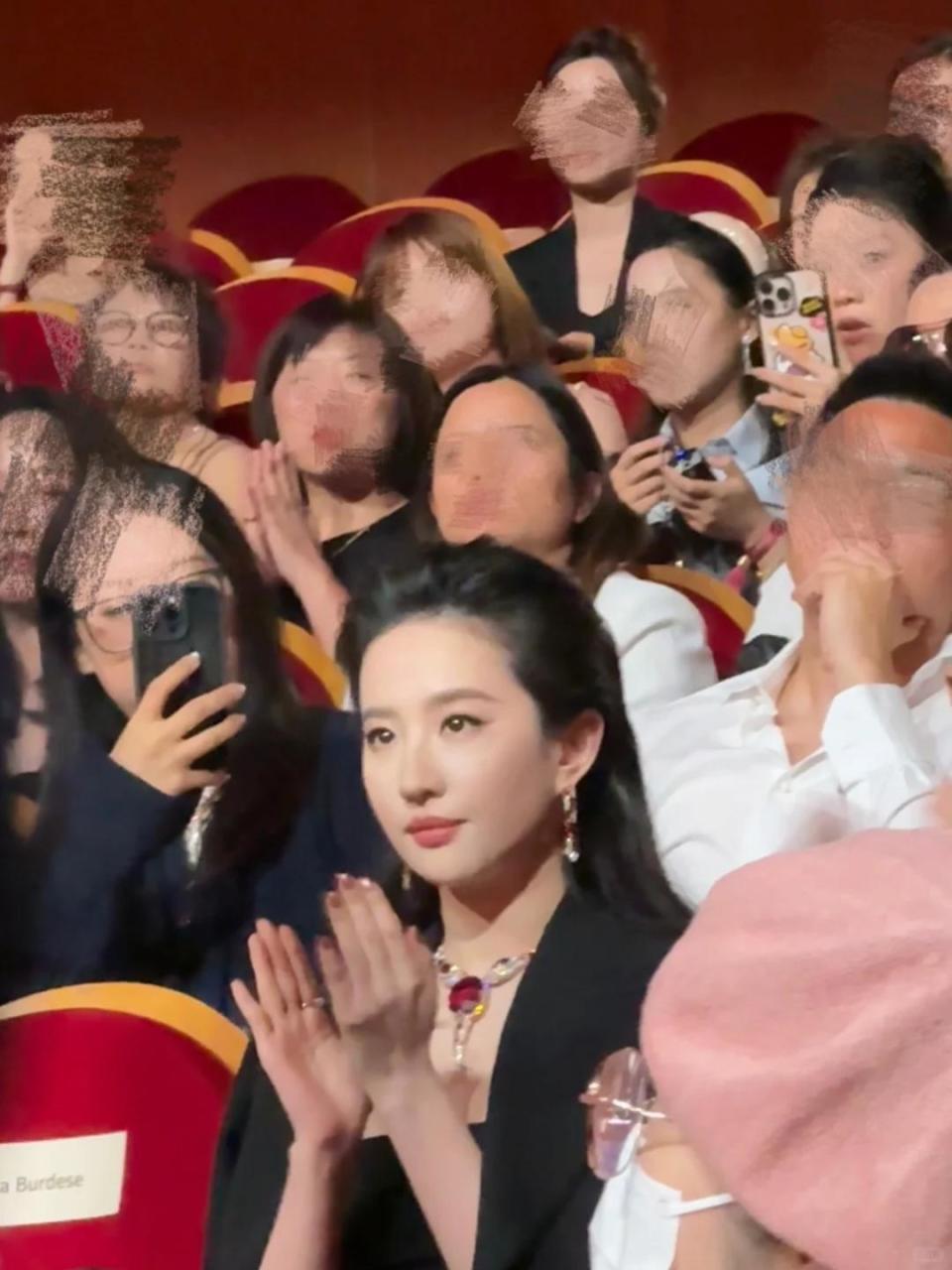 刘亦菲一坐进内场,瞬间就被全场的目光包围。