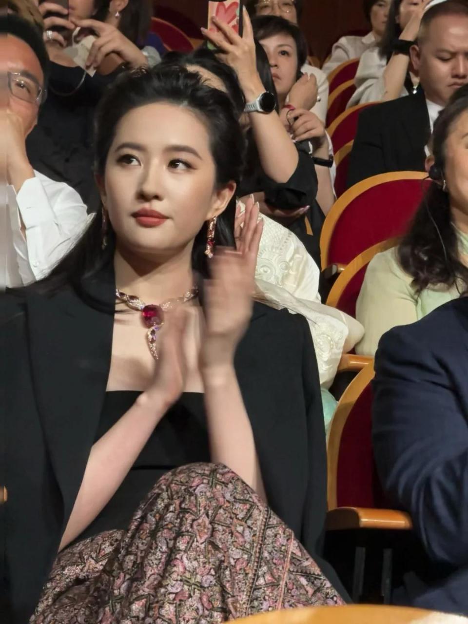 还没等刘亦菲在台下坐多久的时间,又被cue上了台。