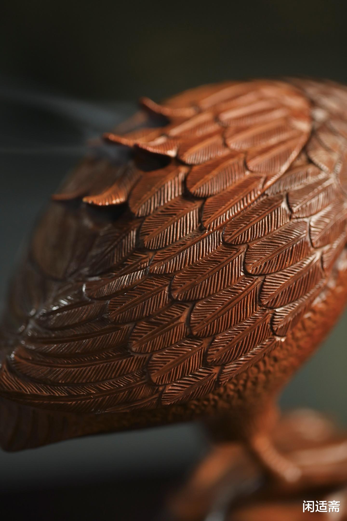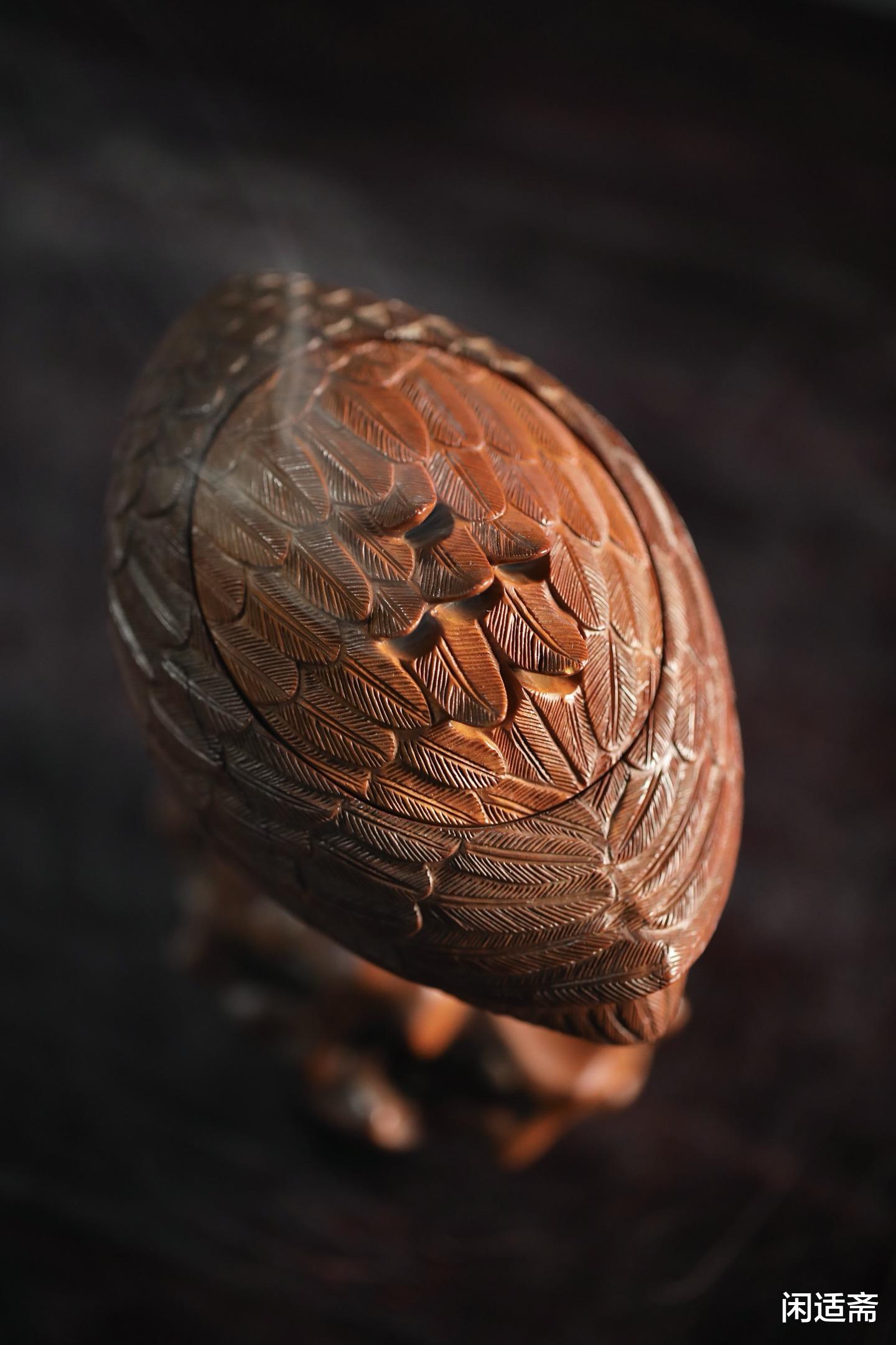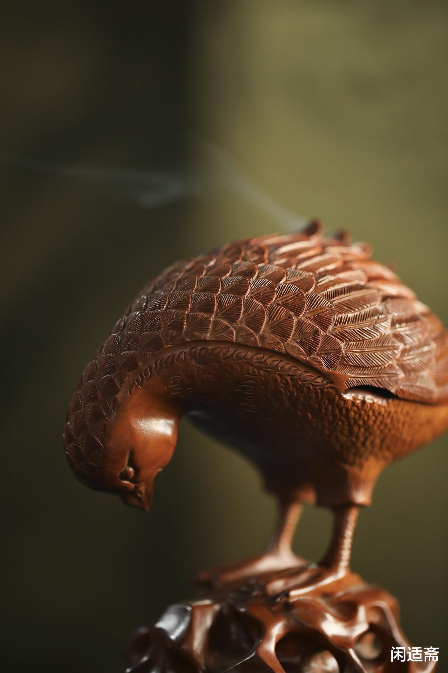 这件黄杨木鹌鹑香炉,是实用香具也是工艺精品。燃香时,沉香、檀香与黄杨木香交织,带来嗅觉与视觉双重享受;不燃香时,便是案头陈设,以吉祥寓意与温润质感为空间添古韵。指尖抚过雀羽纹理,目光追随着青烟,古人 “焚香读书、煮茶赏器” 的雅致生活仿佛在眼前重现 —— 传统器物的魅力正在于此,以有形之躯承载无形文化,让古韵在时光中鲜活流转。