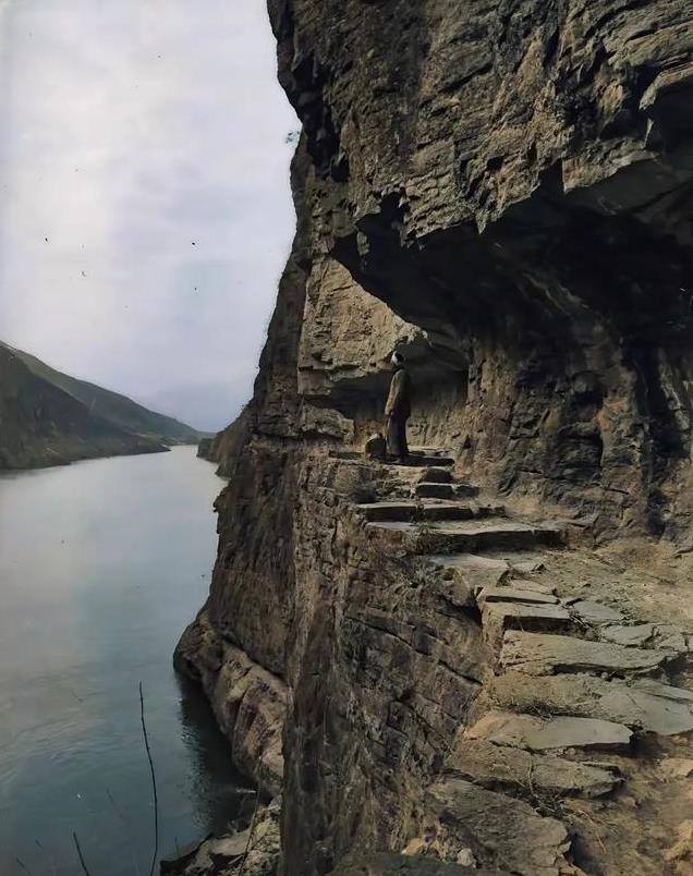 △瞿塘峡上的石板岬栈道,古人用勇气与智慧,在绝壁上凿出了9公里长的栈道,令人叹为观止!