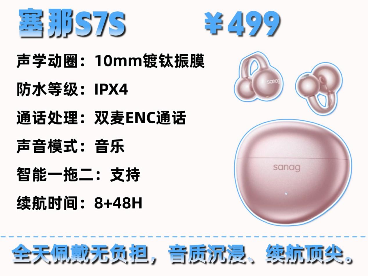 塞那 S7S 这款耳机,音质不算差,10mm 动圈配全景音增强,人声和背景音不混,超低频补偿做得实在,低音够劲还不闷,不盖过人声,听着舒服。