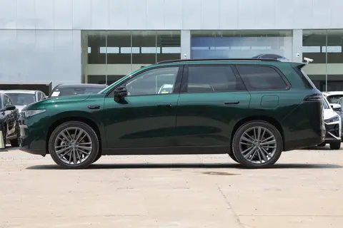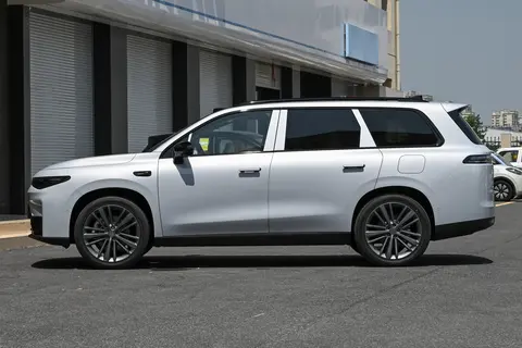 前脸的封闭式进气格栅搭配贯穿式日间行车灯,晚上点亮后辨识度很高,老远就能认出它。分体式 LED 大灯是全系标配,还带自适应远近光功能,跑高速时不用手动切换,遇到对向车辆会自动调暗,特别省心。车身侧面的隐藏式电动门把手很显质感,关门后和车身融为一体,不仅减少了风阻,还让侧面线条更流畅。轮毂有 20 英寸和 21 英寸可选,我选的 21 英寸版本,大尺寸轮毂让车身姿态更稳重,开在路上也更有安全感。