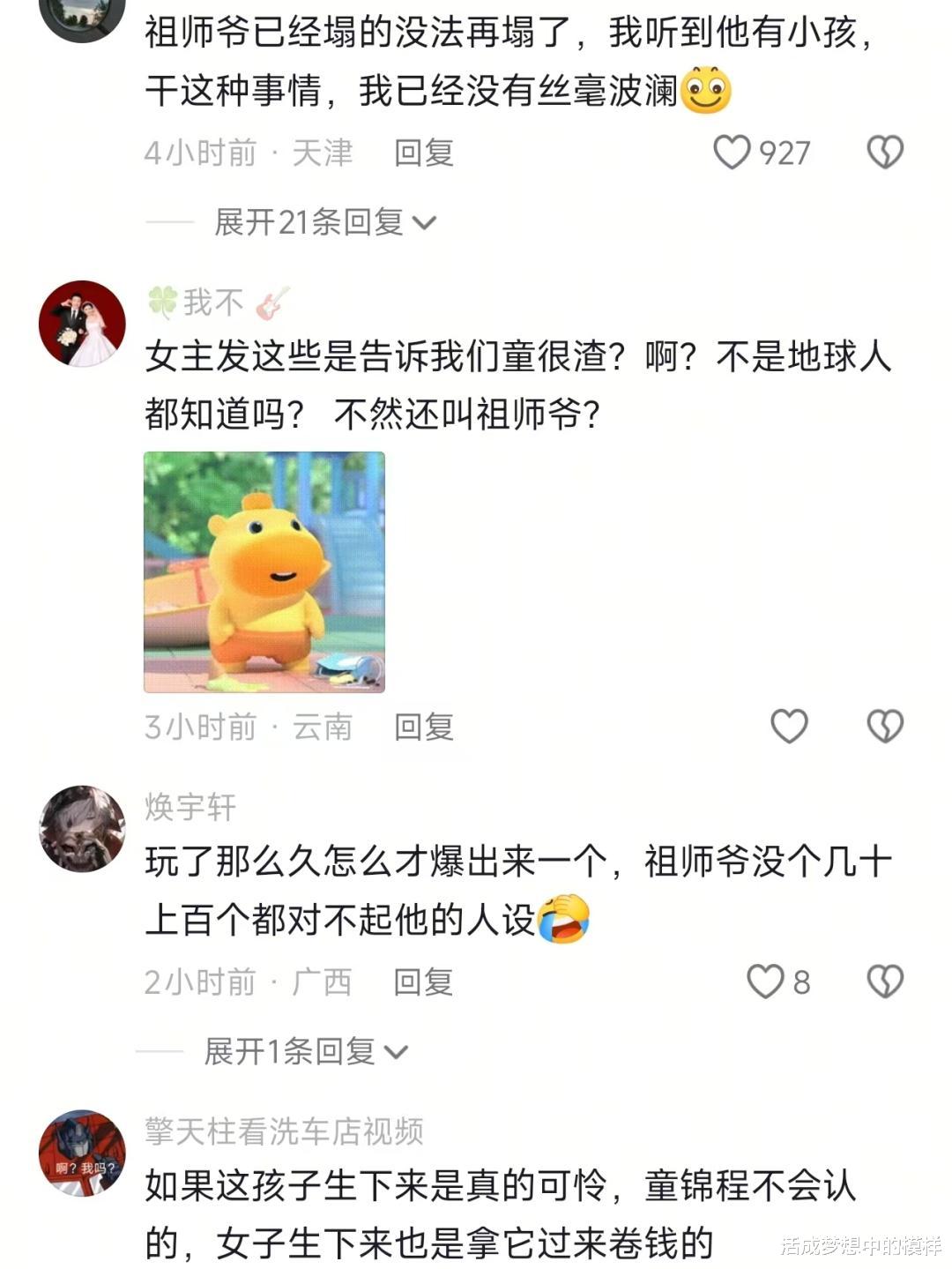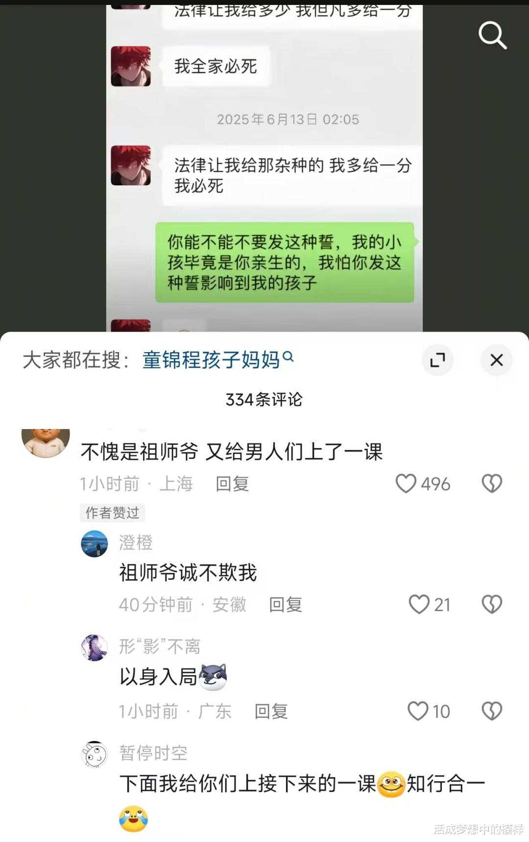 不说别的,某被仙女吹捧的律师就曾经在直播说过,想去父留子就去借种,然后生出来随时要抚养费,看童锦程的遭遇这女方绝对是仙女集美之一,重合度太高了。